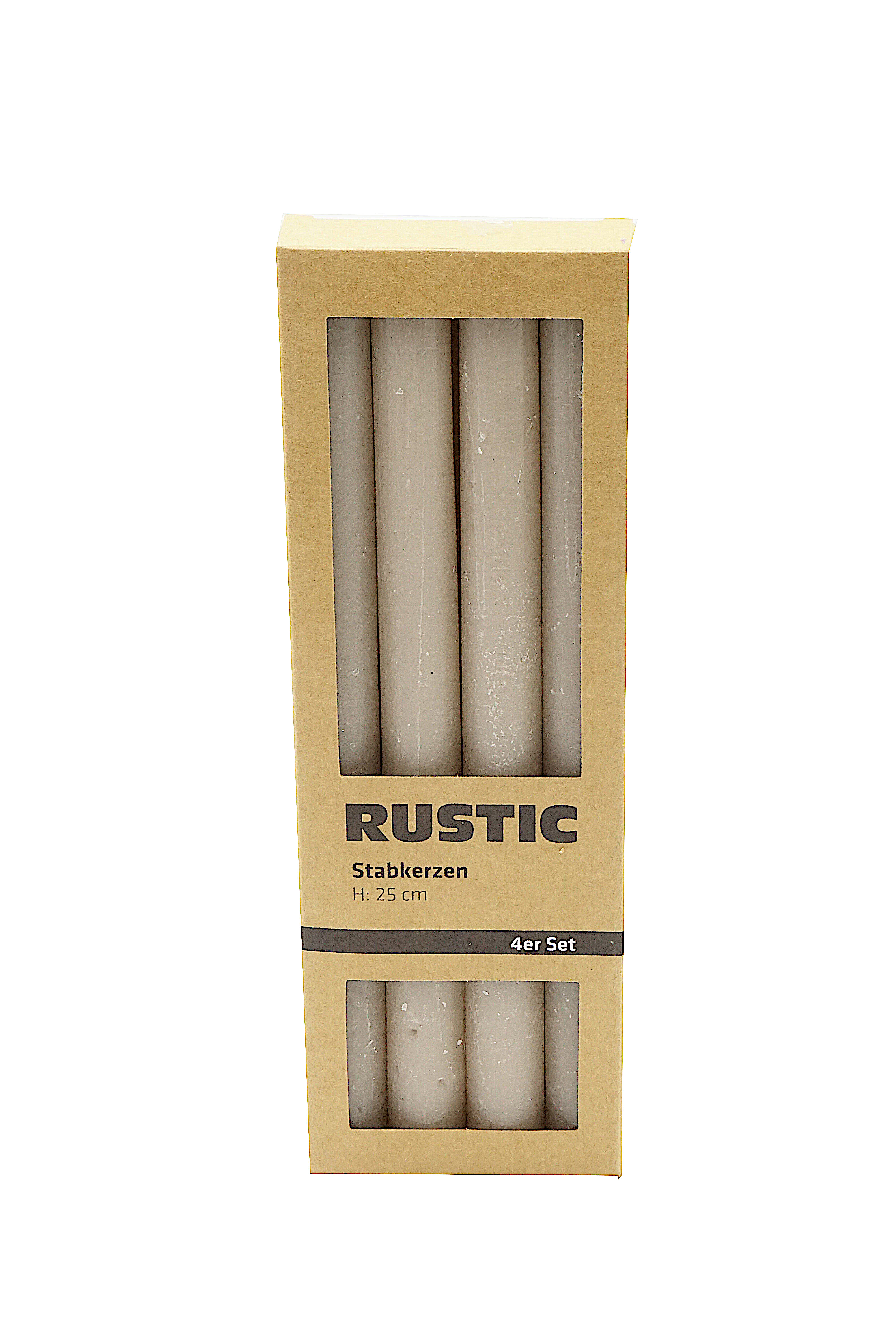 4er-Set Rustik Stabkerzen, 250 x 20 mm, Taupe